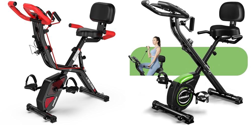 Looking for a great way to exercise at home? The pooboo Folding Exercise Bike is a smart choice. This 4-in-1 exercise bike helps you get fit in different ways. You can cycle upright for a tough workout or semi-recumbent for comfort. It also has arm resistance bands for a full-body exercise. This red bike is designed for your home gym and is easy to use.