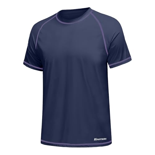 5. Men’s Swim Shirt Rash Guard Short Sleeve UPF 50+ UV Sun Protection Quick Dry Fishing Beach Water T-Shirt (Navy