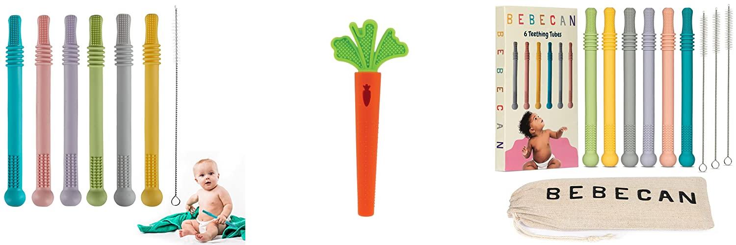 3. BEBECAN Teething Sticks for Babies 0-36 Months – Super Soft Silicone Teethers in 6 Vibrant Colors