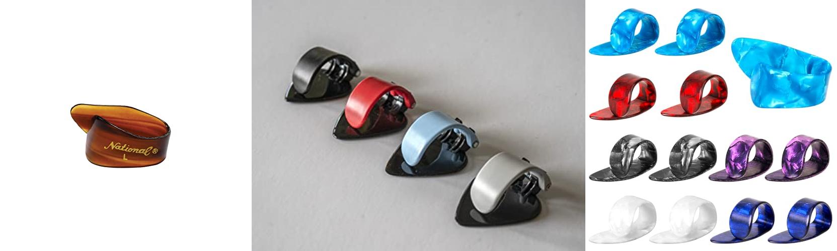 Thumb picks come in different materials. Each one changes how it feels and sounds.