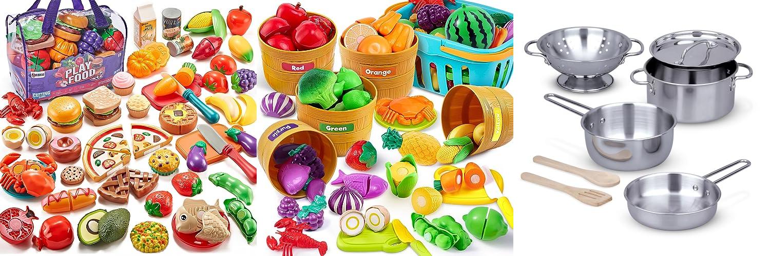 - Learning About Food: Pretend food items can introduce children to different types of fruits, vegetables, and meals. They can learn names and colors.