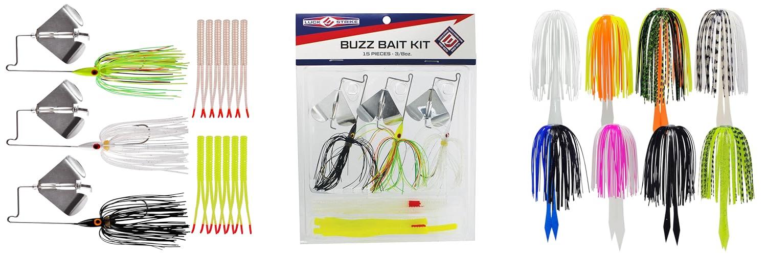 - The kit gives you three different colored buzz baits to try out.
