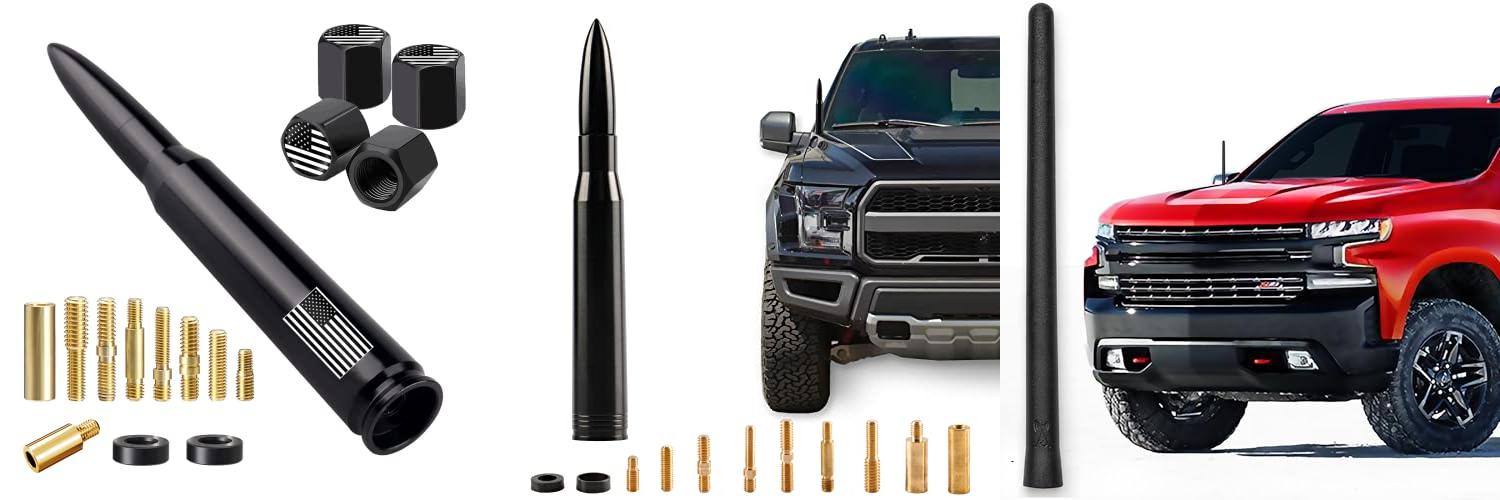 5. RONIN FACTORY Bullet Antenna Chevy Silverado & GMC Sierra Trucks – 50 Cal Truck Antenna Accessories – Anti Theft – Carwash Safe – Short Replacement Antenna