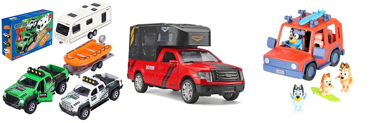 • The camper and life boat are made of plastic, which might not be as durable as the metal trucks.