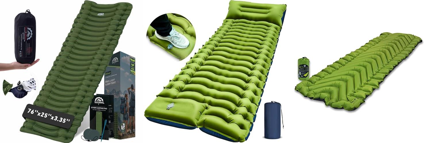 1. Gear Doctors® Ether 17.5oz Ultralight Camping Sleeping Pad – Backpacking Air Mattress – Camping Mattress Pad – Compact Inflatable Sleeping Mat for Backpacking