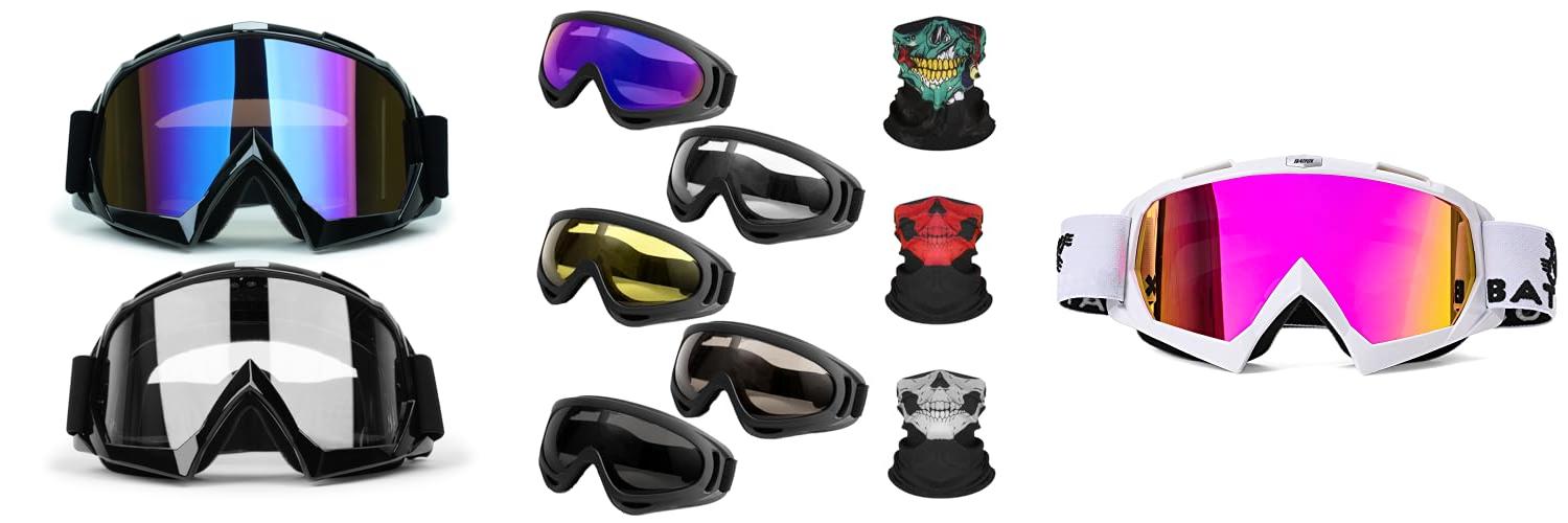 2. YISUGOOC Motorcycle Goggles 5 Pairs Dirt Bike Goggles UV Protection Ski Goggles Riding Dust And Windproof ATV Goggles With 3 Skull Face Mask For Men Women Yourh Adults