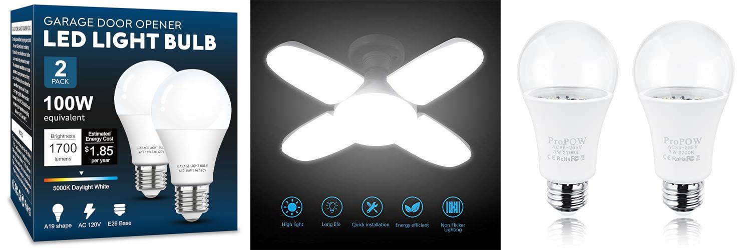 1. LOXYEE Garage Door Opener LED Light Bulb 2 Pack,15W Equivalent to 100W Garage Light Bulb