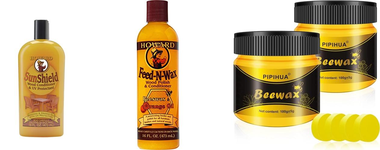 • Beeswax: This is a natural wax made by bees. It’s very good at repelling water and is safe to use. It also gives wood a nice, soft shine.