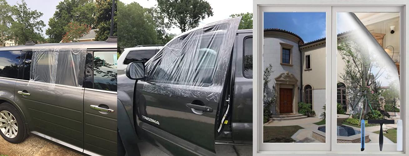2. Big Tape Window Plastic Barrier Film – 2 Pack of 12 Feet XL Roll of Plastic for Windows – 17.5 Inch Wide Car Tape for Broken Windows – Waterproof