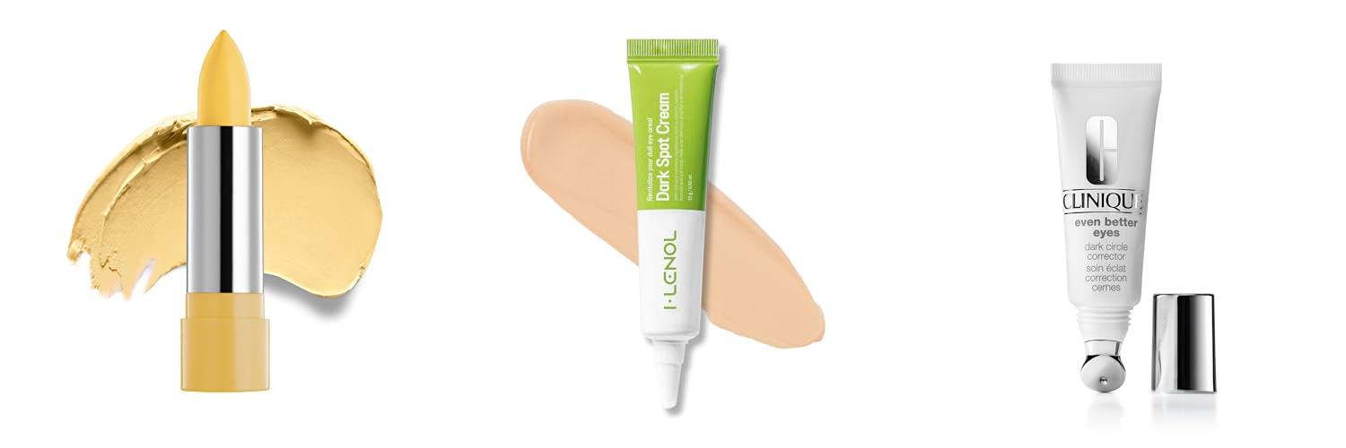• Color Correction: Dark circles often have a blue or purple tint. A color corrector uses the color wheel to help. Peach or orange shades work best on lighter skin. Darker skin tones need deeper orange or red shades.