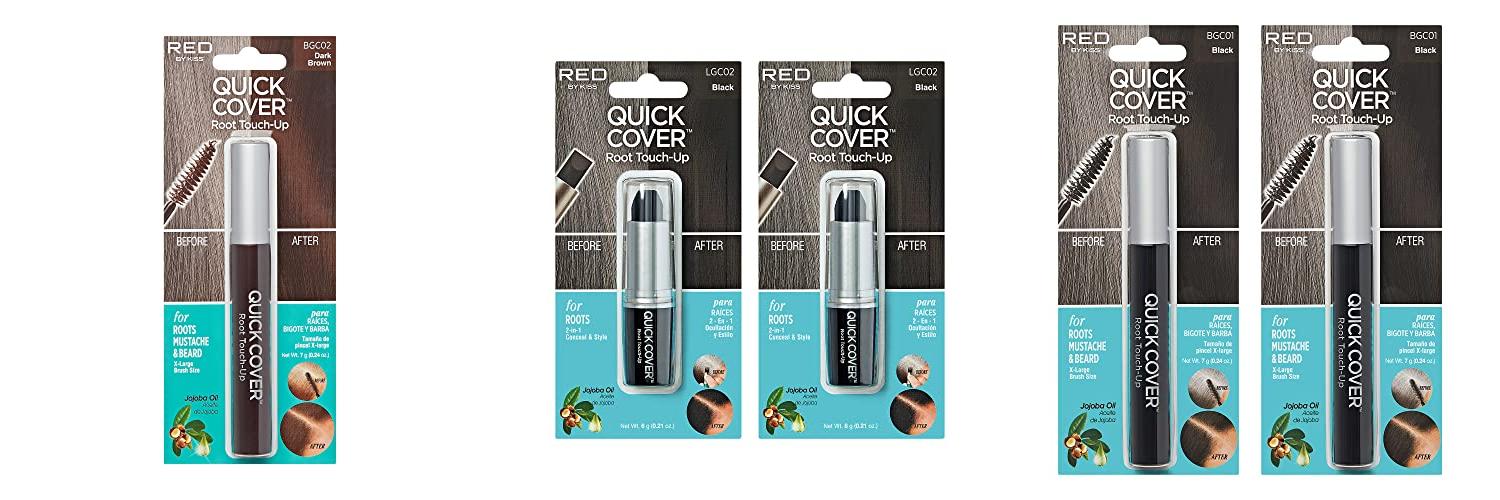 2. RED by Kiss Quick Cover Root Touch Up Stick Type 2PCS Water-Resistant Temporary Gray Concealer Cover Up Brush for Hair and Beard (Black)